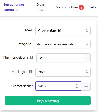 Ons inruilalgoritme schat onmiddelijk de waarde in van een merk op de tweedehandsmarkt. Naarmate de tijd verstrijkt, verandert de restwaarde van een merk. De waarde van een fiets wordt nu bepaald aan de hand van vijf criteria: merk, aanbevolen verkoopprijs, type fiets, bouwjaar en kilometerstand.